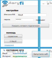 Maryfi is a useful and effective utility for Windows, with which you can create a wi-fi hotspot. The developers guarantee complete confidentiality of the transmitted information, so you can not worry about your own safety. It is characterized by a simple menu, which is available for understanding to absolutely anyone, both novice and professional. It should be noted that WPA2 technology is implemented here.