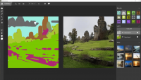 Having completed the creation of a sketch or having selected one of the available layouts, the user will be able to customize the upcoming generation of a detailed image. For example, a person can specify what materials should be used in the final image. Among the options are: grass, snow, water, mountains, hills and so on. Also, the user is offered to choose one of the nine available styles. It should be noted that the computer application works best with landscapes of nature. After configuring the conversion parameters, the user will have to wait a little while the algorithm forms the final image. As a result, the user will get a unique picture. If necessary, the user can export the result to continue working on the picture in other editors, including Blender, Adobe Photoshop and so on.Features