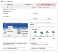 The purpose of the program is to convert a variety of files, including electronic presentations and tables, to PDF format. The user has two options on how to use the tools available in the application. The first one allows you to use the program as an add-on to your office software. For example, the user can convert directly through Microsoft Excel, PowerPoint or Word. The second method involves using the utility as a separate tool. In this case, a person should open the application and enter the path to the desired document. Before the conversion, the user is allowed to independently select the location where the new document will be stored. In addition, a person is able to customize the orientation of the sheets, the size of each page, and so on. Among other things, the computer program allows you to create metadata for the document. For example, the user can enter the author's name, tags and subject.Additionally