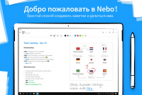 Nebo is an advanced note-taking application. It can be used not only to write down text, but also to make additional handwritten notes. For the program to work as correctly as possible, it requires a tablet computer with a touch screen. In this case, it will be possible to enter data by hand. Also note that the application can recognize voice, supporting 66 different languages.