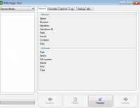 The main interface is divided into three zones. The left part of the screen displays gadgets that are connected to the corresponding port, and in the lower part of the screen you can see buttons that are used to save data recorded from the flash drive. Here you can also restore information from images. If a new device was connected to the computer, it is recommended to click on the update button. And the main place in the interface is occupied by a panel with tabs. To see information about the selected device, you need to go to the device section. To add images, you can click on the favorites option, and to make adjustments - on the options tab.Features