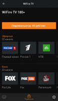 Wifire TV is an application in which you watch TV channels. In the software you watch video content and series from the Russian operator. The application works on TVs with Android TV and on mobile devices. Wifire TV provides viewing of TV series and movies, both in broadcast mode and in favorites mode. Watch your favorite channels and movies by setting high picture quality. The graphical environment of the application is not difficult to master and is suitable for inexperienced users who have just started using smart TVs. This video service is supported by Megafon. In this application, you can't get a discount for the "premium" mode for subscribers of this operator. For those who have Megafon, you will have to use Megafon TV