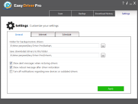 The program always creates backup copies of drivers if it performs their uninstallation. This may be necessary for those situations when the installed software turns out to be incompatible, or simply installs incorrectly. Easy Driver Pro will then be able to roll back to the previous state of the system, completely getting rid of the non-functioning component.Settings