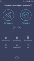 Zapya is an Android application for transferring files to other platforms. It supports simultaneous connection of up to 5 devices. You can use Bluetooth or a shared hotspot to connect. You can use a generated QR code to quickly integrate a new device. It is possible to create full-fledged chats for messaging. The main interface of the program is divided into 4 sections according to the type of files to send - music, video, applications and images. There is also a file manager for navigating through directories. In this case, you can find and send any file. Sending folders and large size files is supported. The built-in algorithm provides the maximum available speed. If the appropriate permission is obtained, you can view the list of installed programs of another device through the chat. It is possible to use the chat in the group correspondence mode. The functionality of the program can be used not only for file transfer, but also for backup by configuring the sending of important data to a PC. This will allow you to save important data in case of failure. It is also possible to use your mobile device as a wireless mouse. A full list of features is available in the help section. The connection process, work with files and directories, available settings and interface elements are described. It is worth considering that the free version provides full functionality, but the interface provides a large number of advertising banners. To disable them, you need to