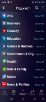 The most popular stations at the moment are displayed on the main page. A separate tab allows you to access the full catalog. Categories are provided - by country, genre, artists and other parameters. There is a search window and a set of filters. For quick access, you can add a station to the Favorites panel, which will eliminate the need to search for it in the catalog. The next tab contains podcasts. There is also a convenient structure based on a set of headings: educational, humor, business, hobbies and so on. You can select the language. The search window allows you to search by parameters or keywords.Additional features