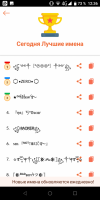 The main page includes a list of rare and popular names that were randomly generated. The user will be able to select them by tapping and then copy the best names or share them in messengers and social networks. Also here you can go to a separate tab, which is designed to create nicknames from the selected name. To realize this task, you need to enter the desired nickname in the appropriate field, and then click on generation. The program offers several variants based on the given name. At the same time, you can independently select decorations for it. The result itself can be copied and pasted into any desired resource. Moreover, there is a built-in assortment of names and words that can be used as nicknames. It is divided into several sections, including popular, nicknames for girls and guys, legendary, Greek, Indian and many others.Additional features