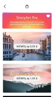 When you launch the program, the start page with the main categories of templates is displayed. There is an opportunity to find a suitable option by selecting the desired theme. For example, you can apply a classic frame in the style of Polaroid photography. After selecting a template, you can click on a certain area, indicating the location of the photo. Next, a gallery will be opened to select the desired image or video. It is worth considering that the duration of the videos should not exceed 15 seconds. If you give the application permission to access multimedia, you will be able to save the received stories to the memory of the device. It is also possible to send them to Instagram at once.Store