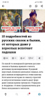 In the interface, the feed is categorized into popular and new tabs. You can also use the search engine to find articles according to the relevant query. The application classifies news by sections. Examples include design, psychology, advertising, nostalgia, author columns, artists, photographers, and more. Each news item includes photos. You can also see the number of likes, dislikes, reads and opinions left. You can send publications to friends via messengers and social networks, and you can find similar content under the articles themselves.Features