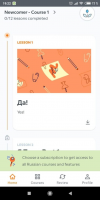 The first thing a person has to do is to authorize. For this purpose, it is allowed to use information from profiles from the following platforms Facebook as well as Google the user can then specify his native language and the language he wants to learn. Then the mobile program will offer to perform a short test to assess the current knowledge of the selected language. The program gives access to the beginning of the course of any of the available languages for free. However, the user will have to pay a subscription fee to be able to complete the entire course.Learning process